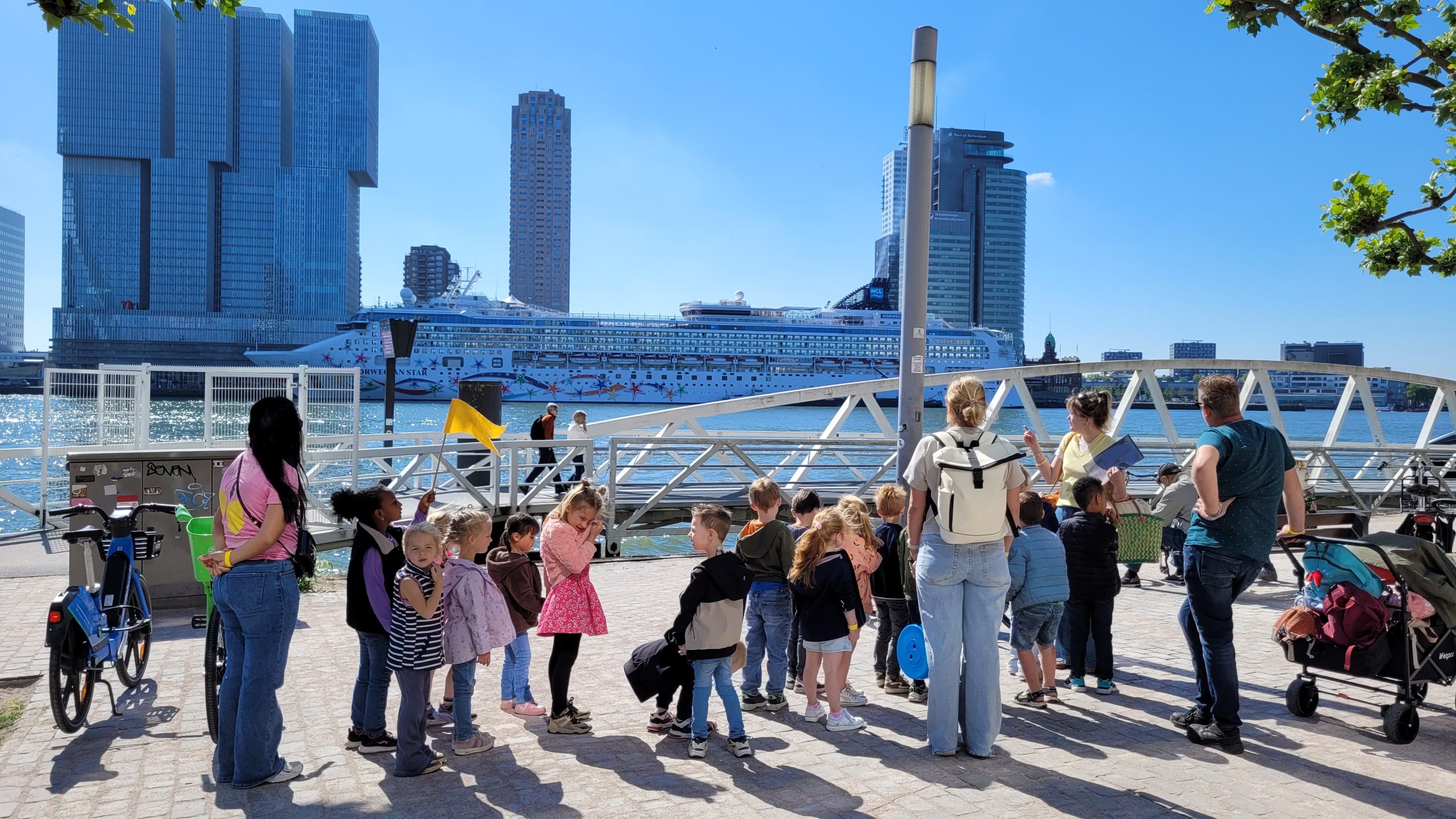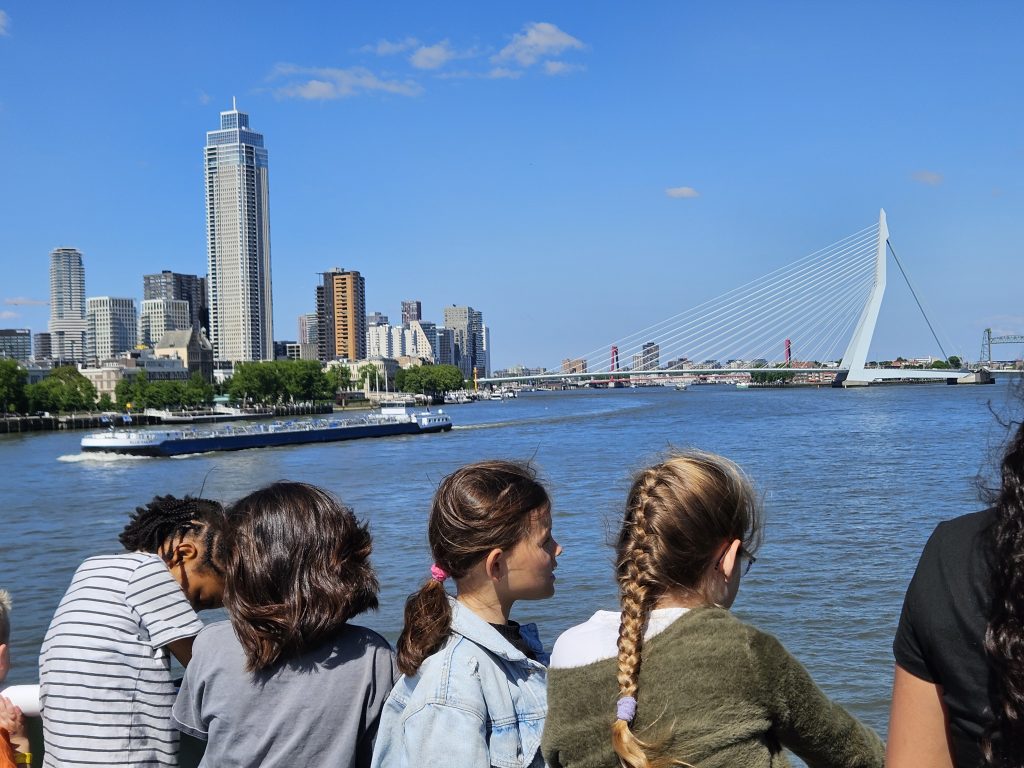 En toen was het nog niet klaar, want ’s middags troffen we elkaar allemaal weer op het Willemsplein en gingen we aan boord van de Spido voor een prachtige havenrondvaart. Want ja, Rotterdam is een echte wereldhaven. We boften enorm met het weer. De stralende zon en de blauwe lucht liet alle bruggen, gebouwen en schepen schitteren. En wij? Wij keken onze ogen uit! Stralende snoetjes allemaal tijdens deze wereldreis! Hallo wereld, het was indrukwekkend een stukje van jou te zien!